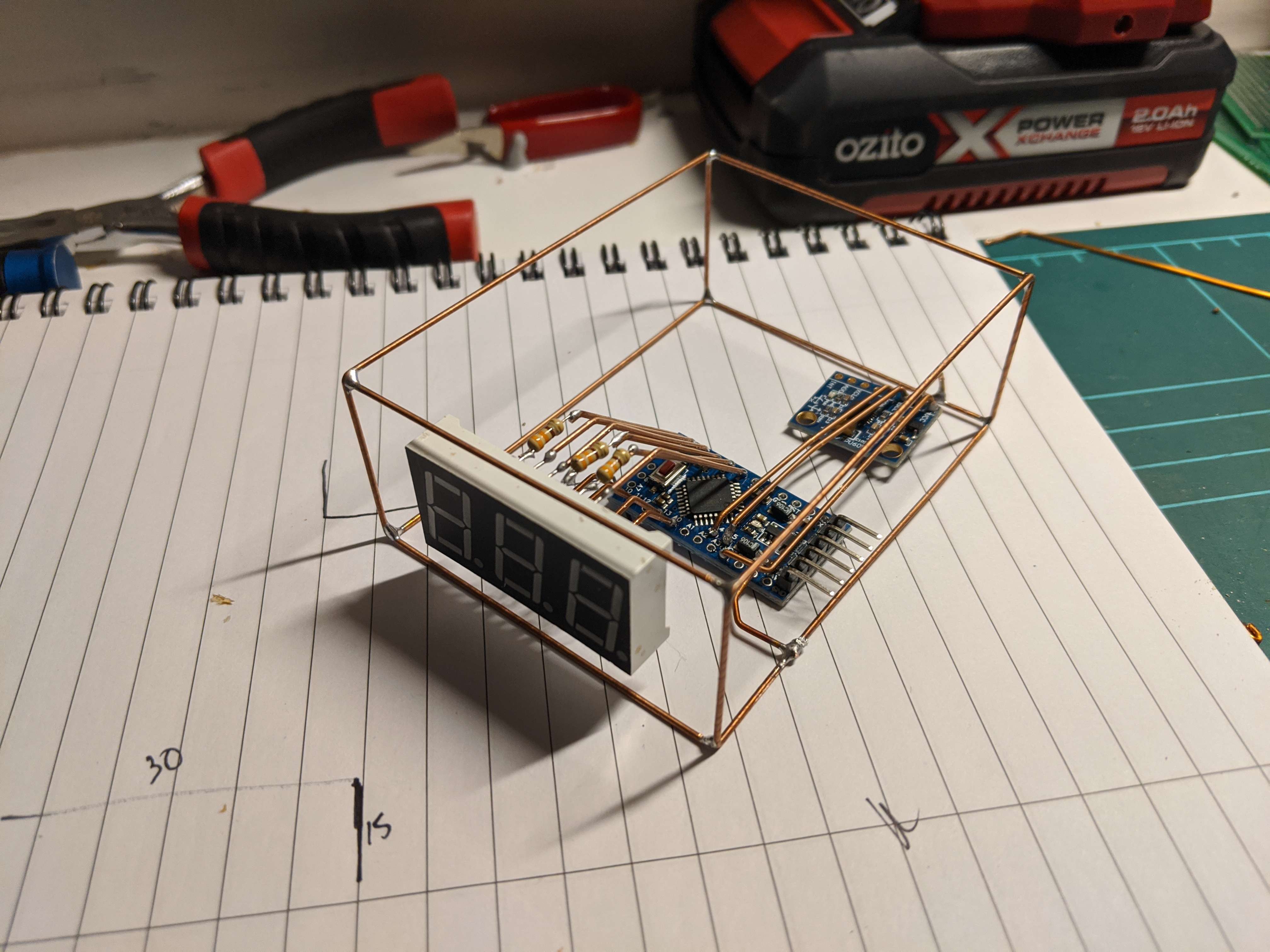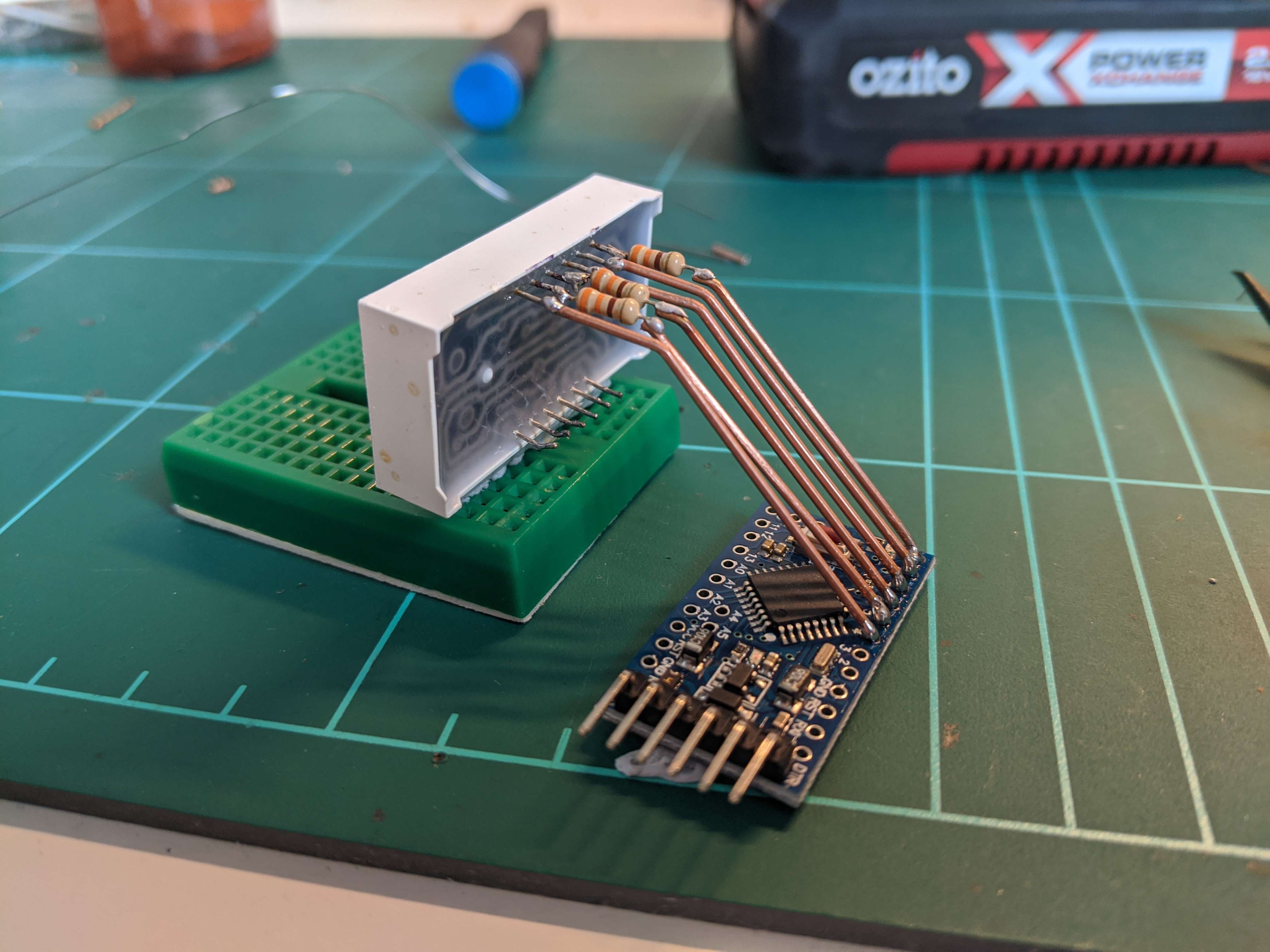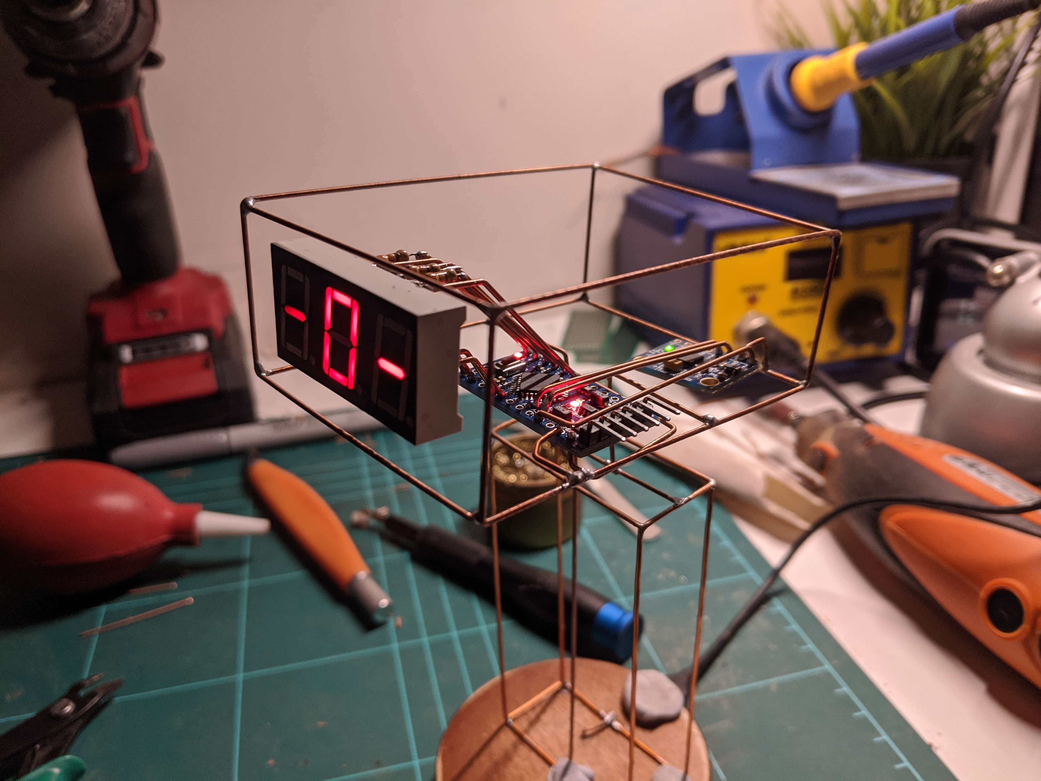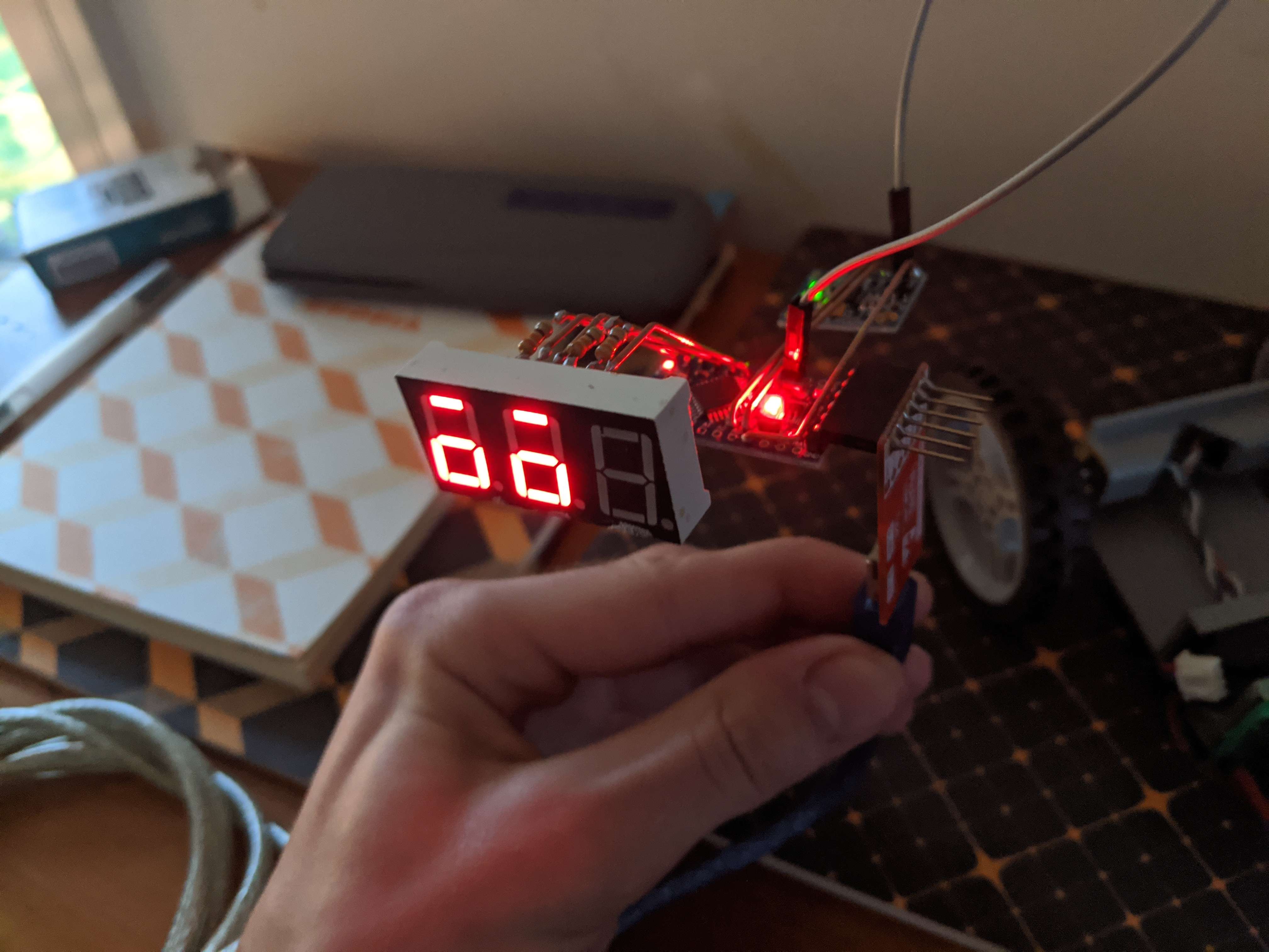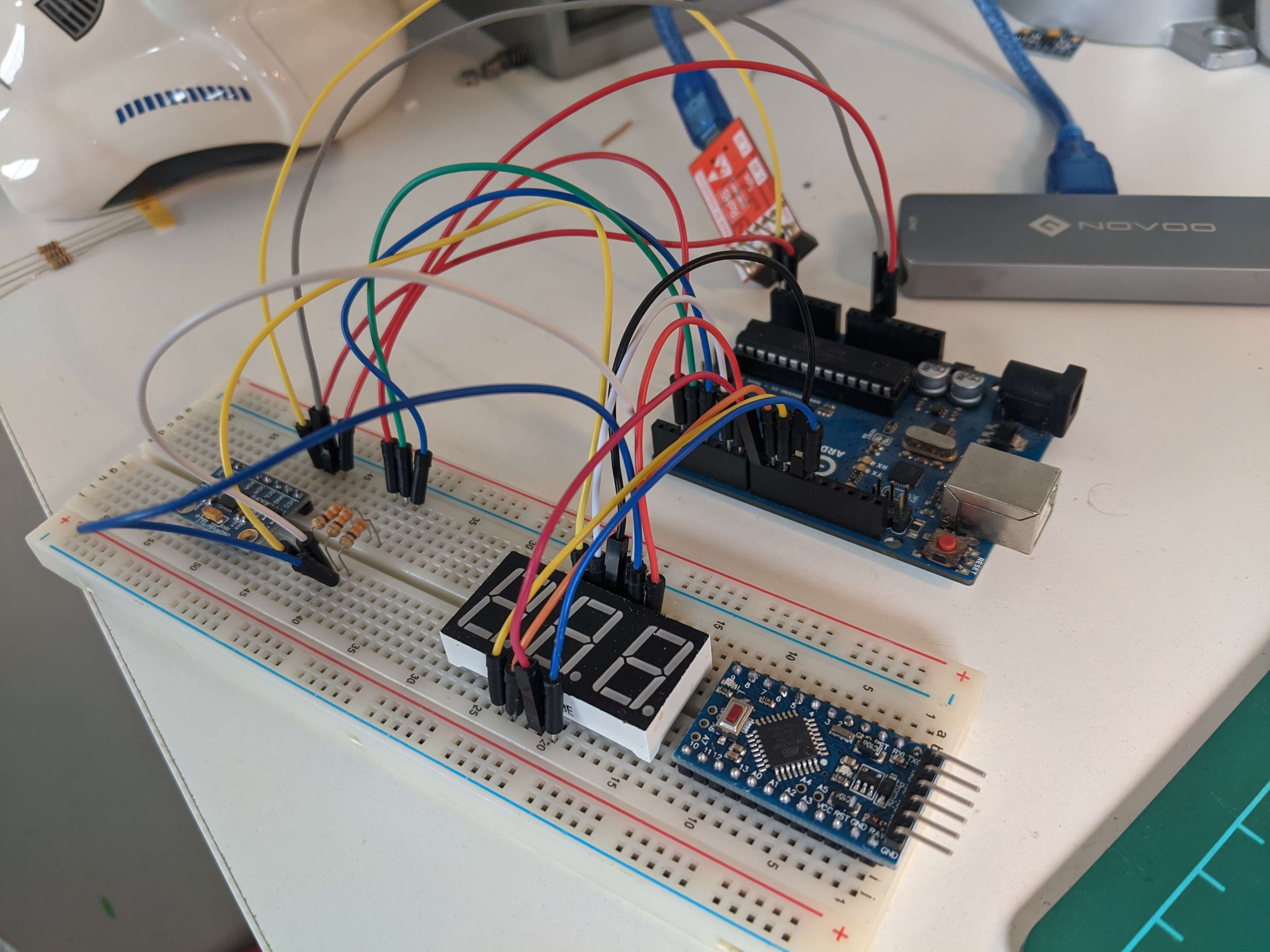 Another wire runs from the base and into the Arduino microcontroller to provide power.